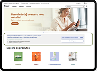 Clique em Iniciar sessão para se registar como Empresário Amway e introduzir os seus dados pessoais. A partir desse momento, tem 30 dias para concluir o registo.