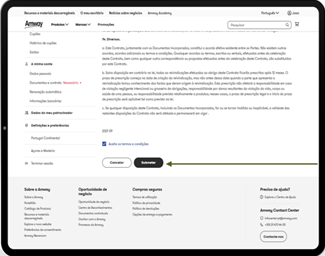 Leia os termos e condições, selecione Aceito os termos e condições e clique em Submeter.